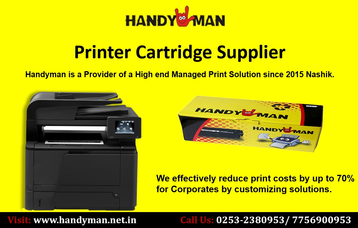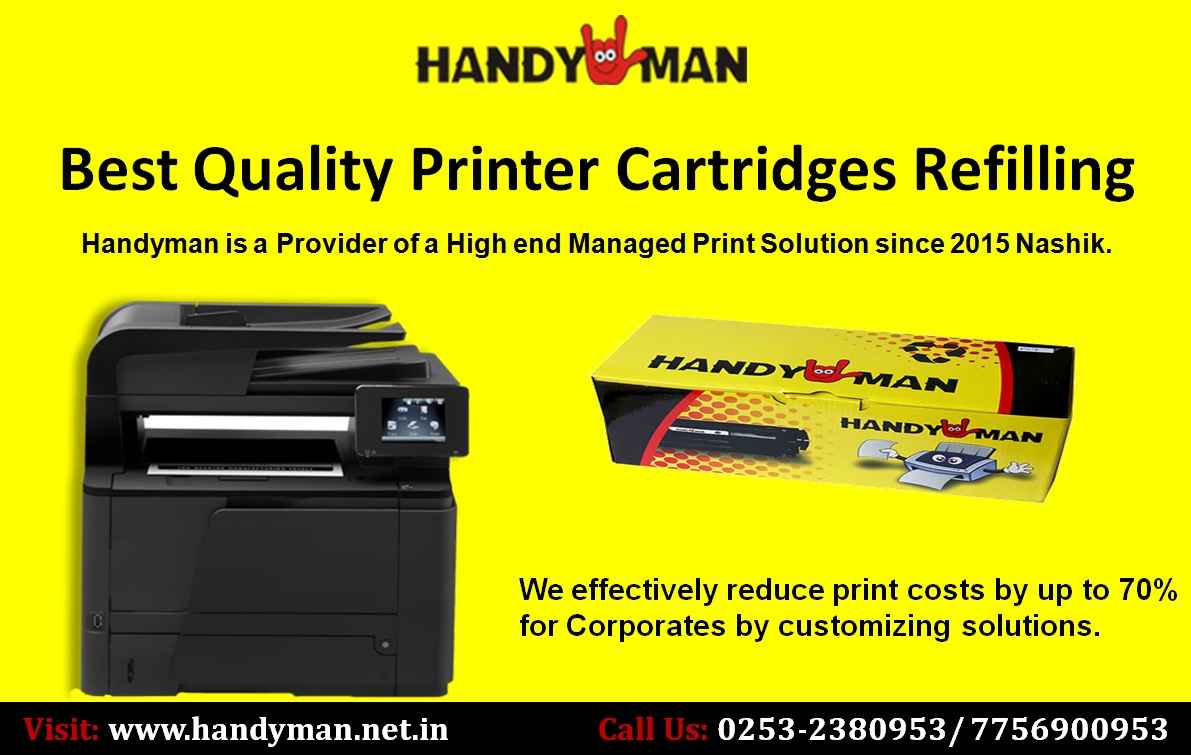 Handyman manufacturer and supplier original printer cartridge refill supplier in Nashik since 2015. As a trusted managed print services provider, you are sure of getting the best products. Always guarantee that you use genuine HP/Canon Printer Cartridges for your printers to avoid harm or reduce print cost. Our genuine printer cartridge refills used to deliver quality print from the first to the last page.